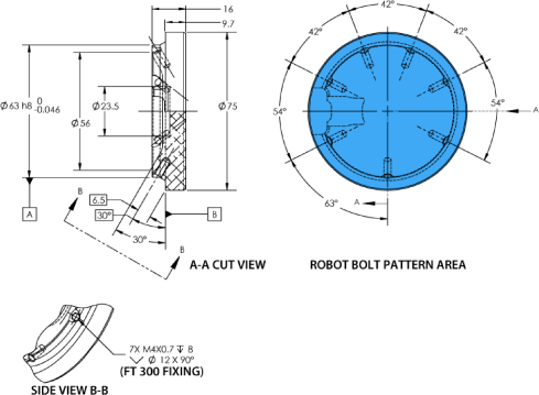 FT 300 tool side bolt pattern matches ISO-9409-1-50-4M6.